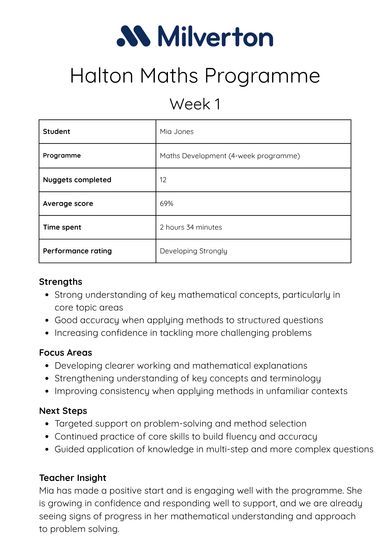 Two focused sessions per week at Halton, led by a fully qualified maths teacher with extensive classroom experience.